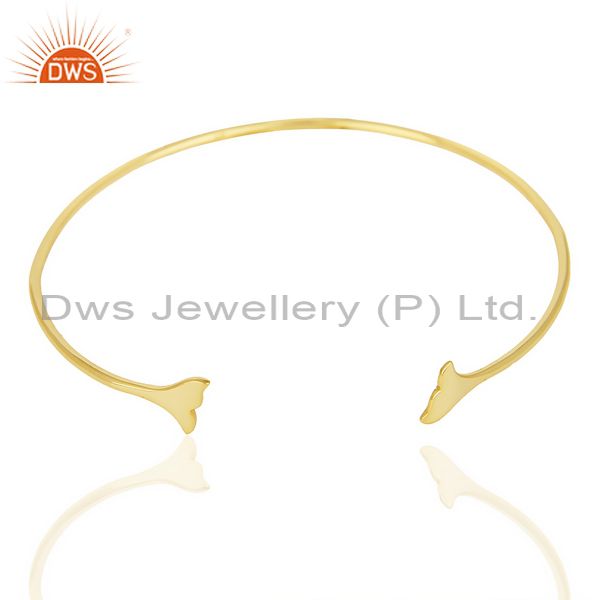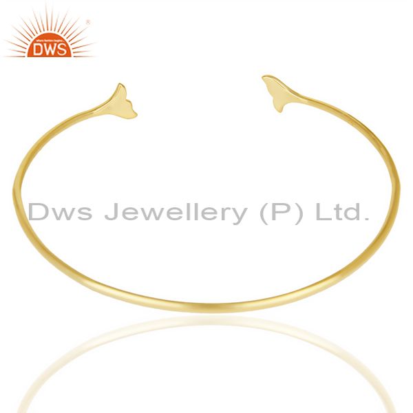Dolphin Tail Adjustable Openable 14K Gold Plated 92.5 Sterling Silver Bangle