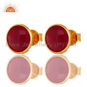 Dyed Pink Chalcedony Sterling Silver Adjustable Bangle With Yellow Gold Plated