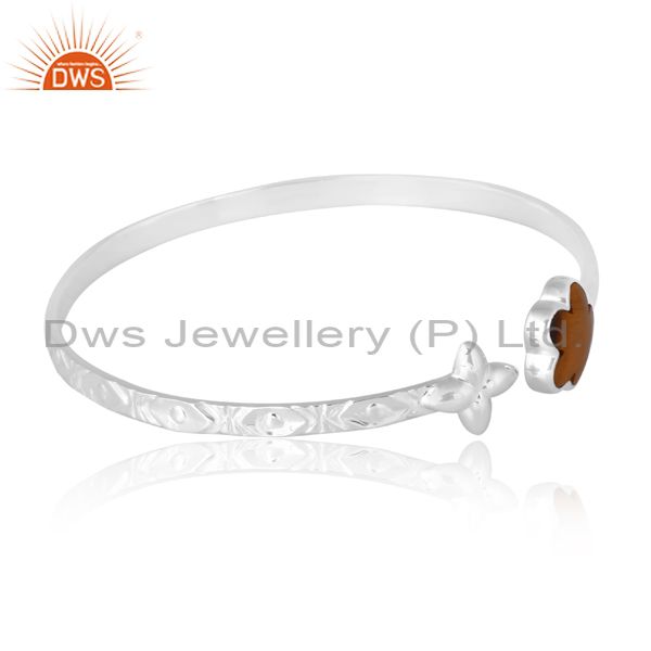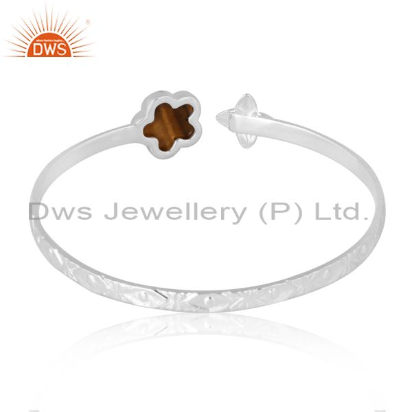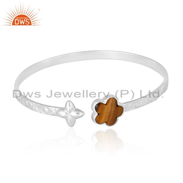 Eccentric Tiger Eye Yellow Cuff Rolling Band In Silver