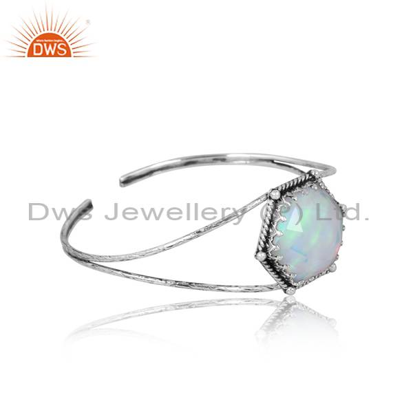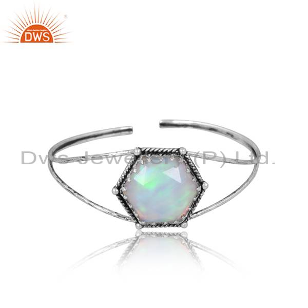 Elegant And Eye-Catching Hexagon Cut Aurora Opal White Cuff