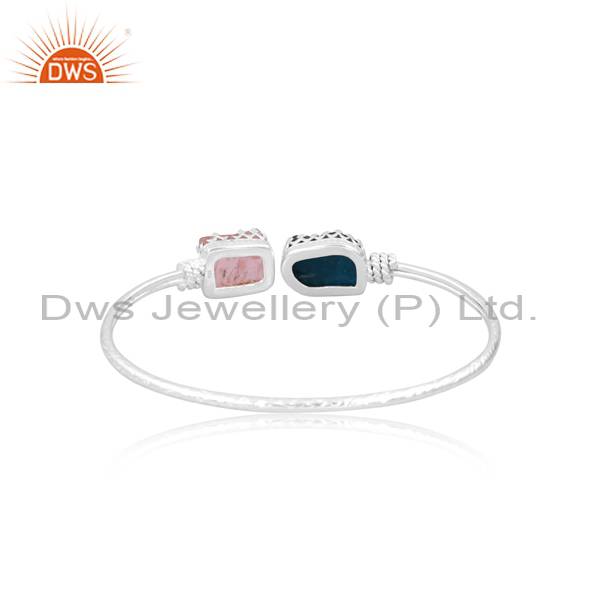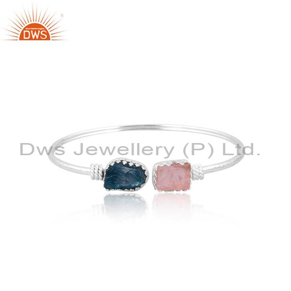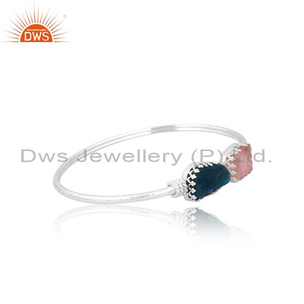 Exquisite Neon Apatite & Rose Quartz Sterling Silver Cuff
