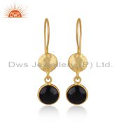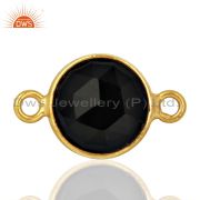 Faceted Black Onyx Gemstone Adjustable Sleek Bangle In 14K Gold On Sterling Silv