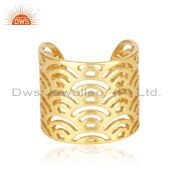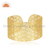 Filigree 18K Yellow Gold Plated Designer Plain Silver Cuff Bangle