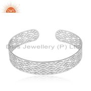 Filigree Design White Rhodium 925 Sterilng Silver Cuff Bracelet