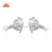 Fish Design 925 Sterling Silver White Zircon Gemstone Cuff Bangle