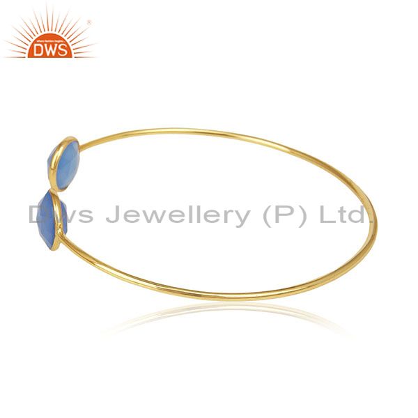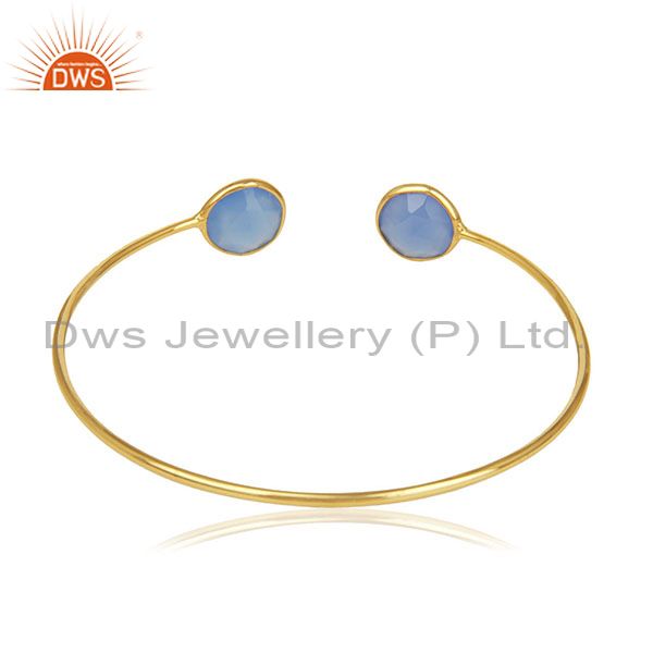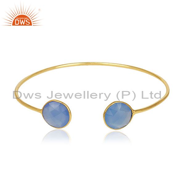 Gold Plated 925 Silver Blue Chalcedony Gemstone Cuff Bracelet Wholesale