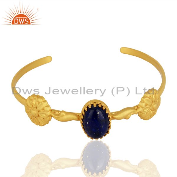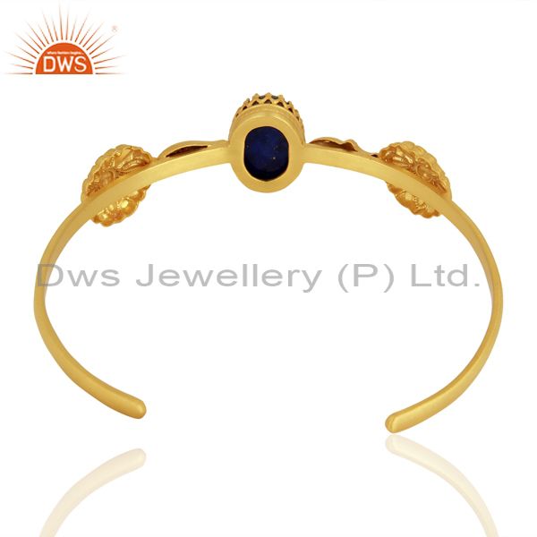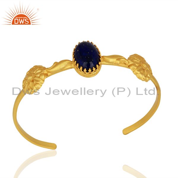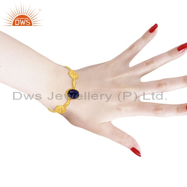 Gold Plated 925 Silver Lapis Gemstone Cuff Bangle Bracelet Jewelry