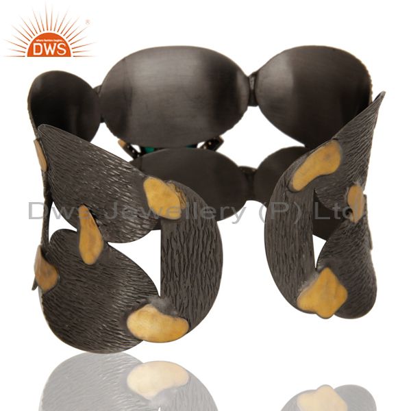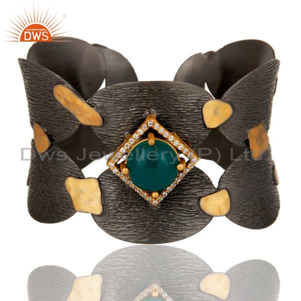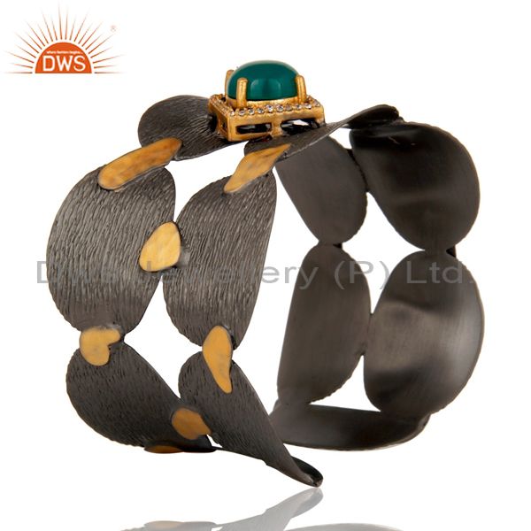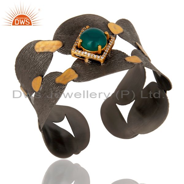 Green Onyx And Zircon Black Oxidized Hammered And Scratched Handmade Cuff