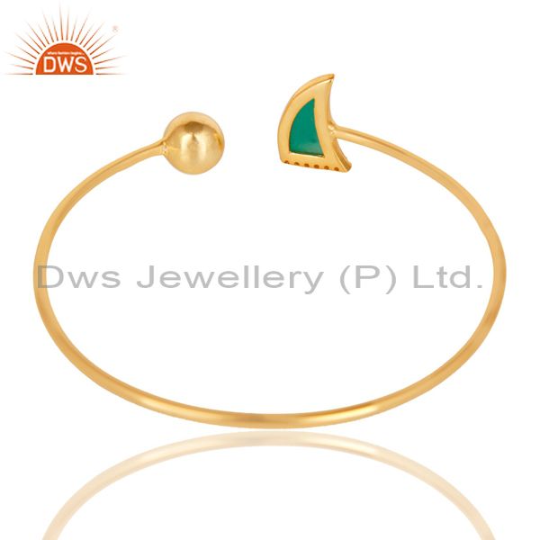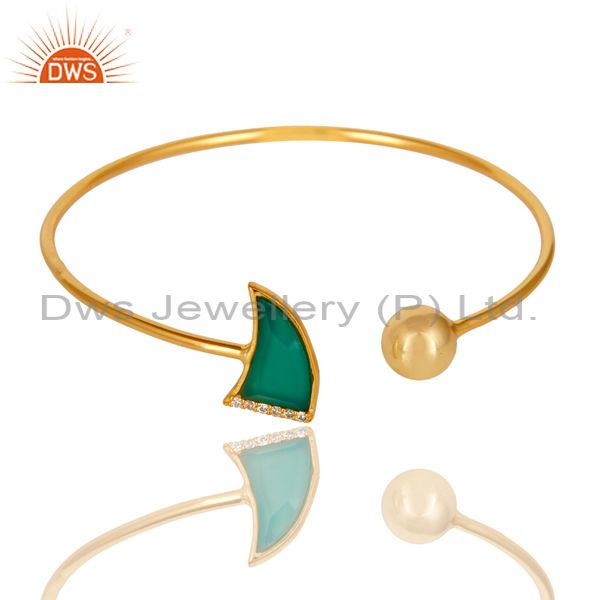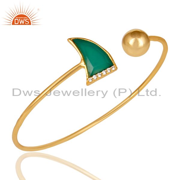 Green Onyx CZ Sleek 14K Gold Plated 925 Sterling Silver Cuff Bangle Jewelry