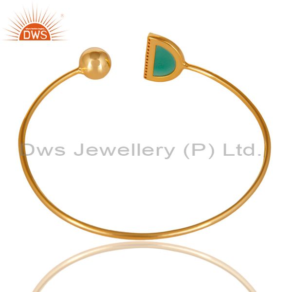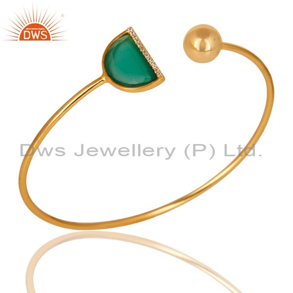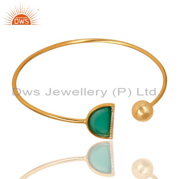 Green Onyx CZ Sleek 14K Gold Plated Sterling Silver Cuff Bangle Jewelry