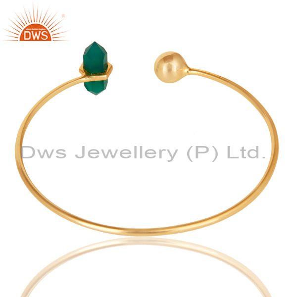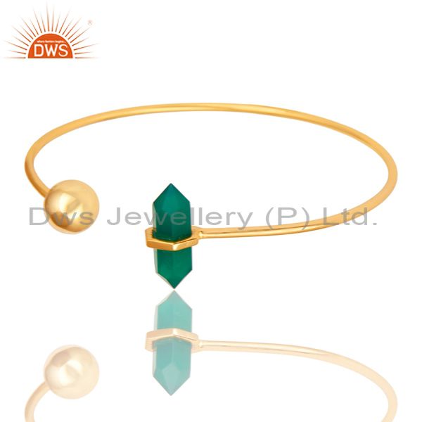 Green Onyx Double Terminated Pencil Point Openable Gold Plated Silver Bangle