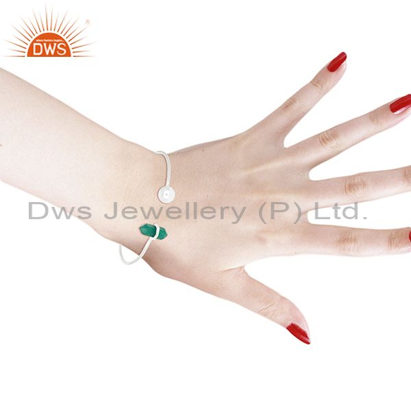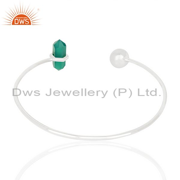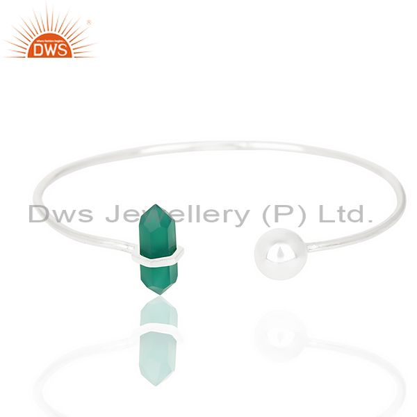 Green Onyx Double Terminated Pencil Point Openable Sterling Silver Bangle