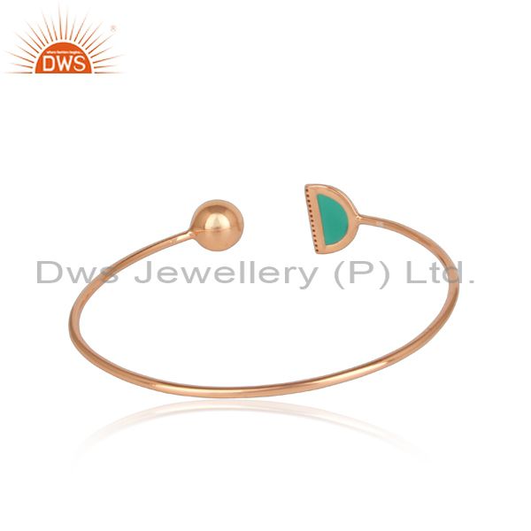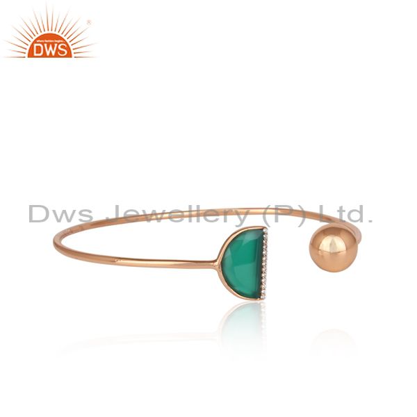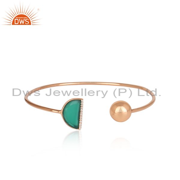 Green Onyx Moon And Cubic Zirconia Set Silver Rose Cuff