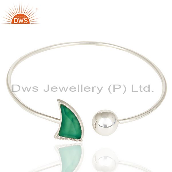 Green Onyx Openable Horn Bangle In Solid 92.5 Sterling Silver FashionJewelry