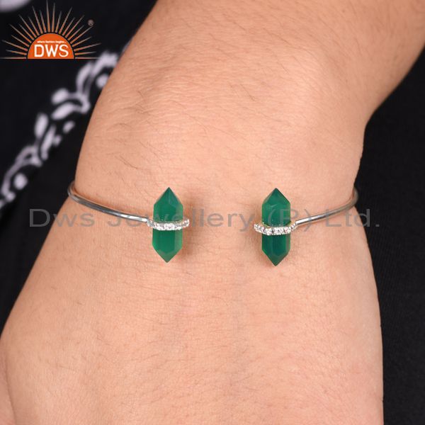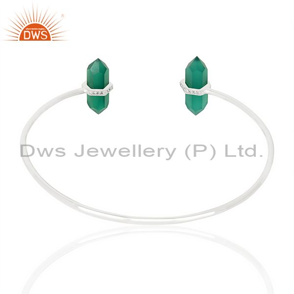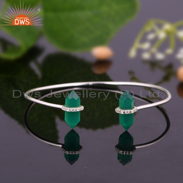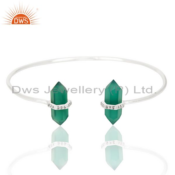 Green Onyx Pencil Point Healing Openable Adjustable Sterling Silver Bangle