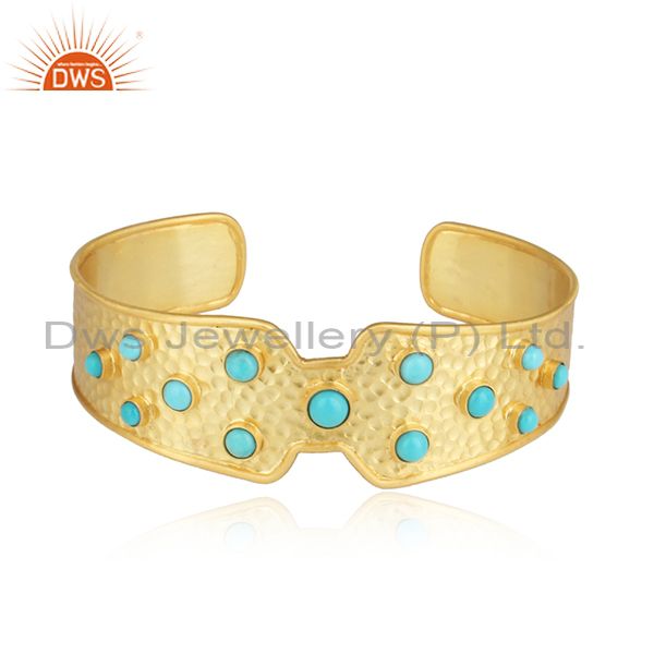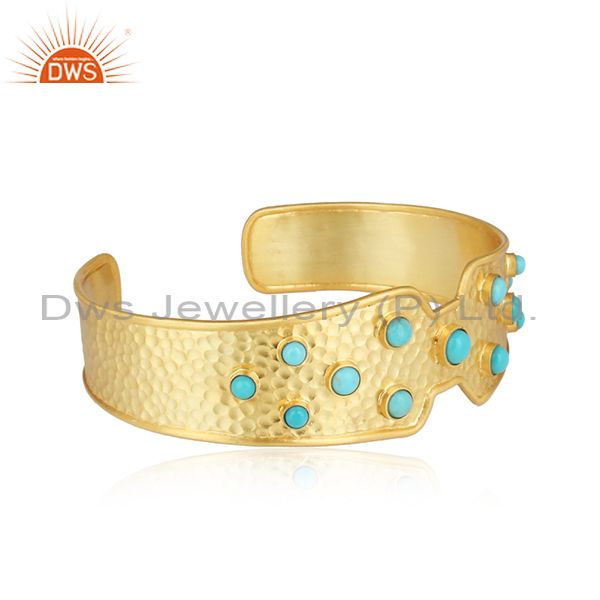 Hammered Bold Textured Gold on Silver Cuff with Arizona Turquoise