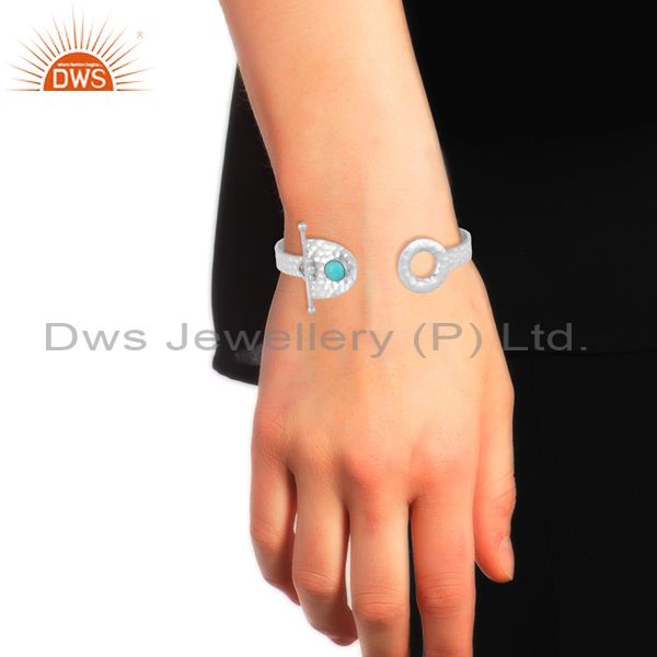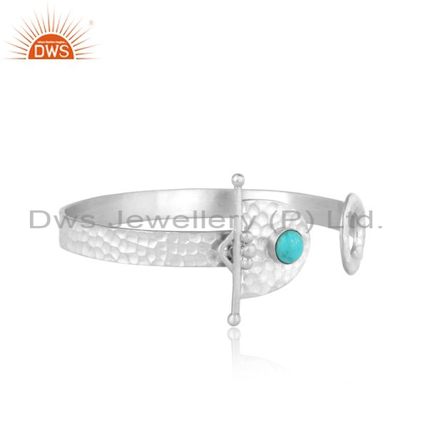 Hammered Textured Designer Silver Cuff with Arizona Turquoise