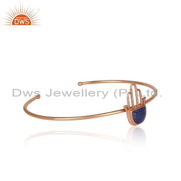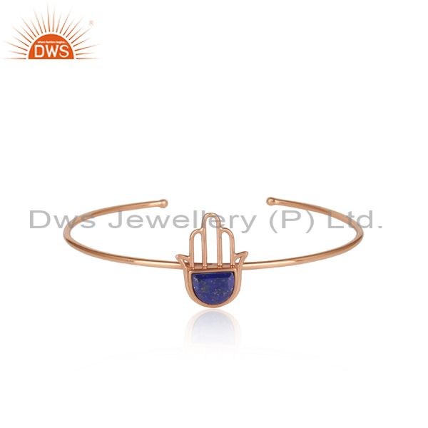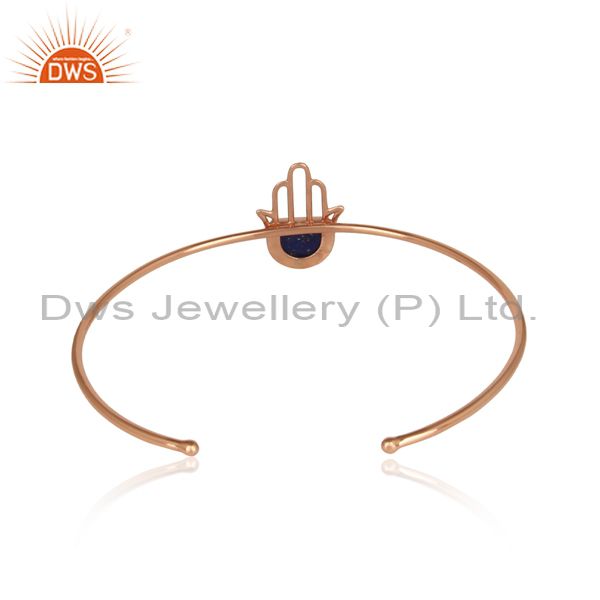 Hamsa Lapis Moon Set Sterling Silver Rose Adjustable Cuff