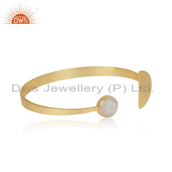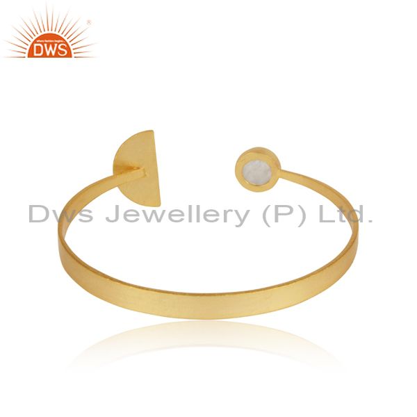 Handcrafted Designer Cuff in Gold on Silver with Rainbow Moonstone