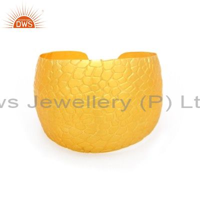 Handcrafted Sterling Silver Hammered Bangle Bracelet With 22K Gold Plated