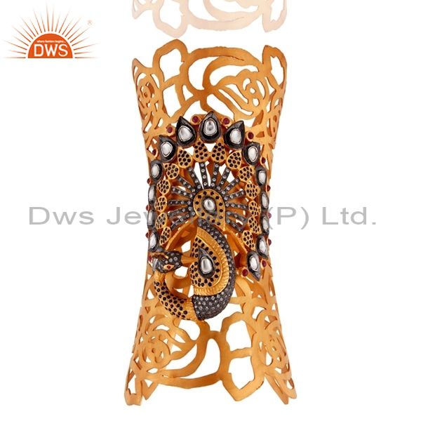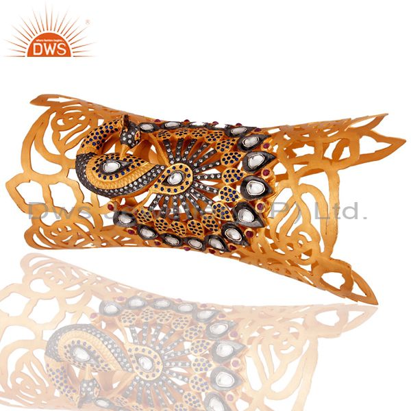 Handcrafted Sterling Silver Ruby Peacock Designer Cuff Bracelets - Gold Plated