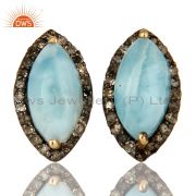 Handmade 14K Yellow Gold Larimar Gemstone And Pave Diamond Torque Bangle