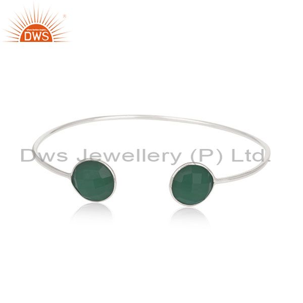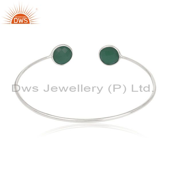 Handmade 925 Silver Green Onyx Gemstone Cuff Bracelet Manufacturer From India