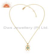 Handmade Bamboo Textured Arizona Turquoise Cuff in Gold on Silver 925