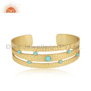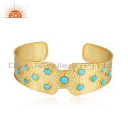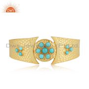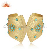 Handmade Designer Hammered Gold on Silver Arizona Turquoise Cuff