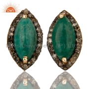 Handmade Emerald And Pave Set Diamond 14k Yellow Gold Fashion Torque Bangle