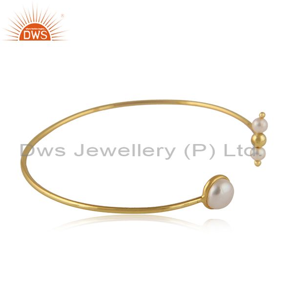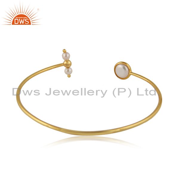 Handmade Gold Plated 925 Silver Natural Pearl Gemstone Cuff Bangle