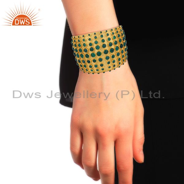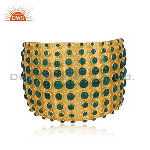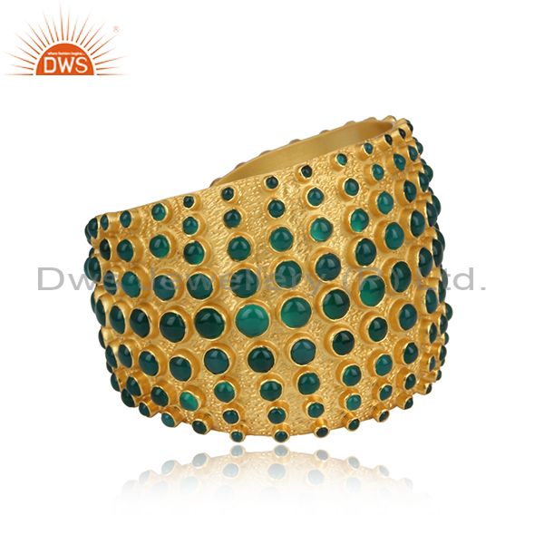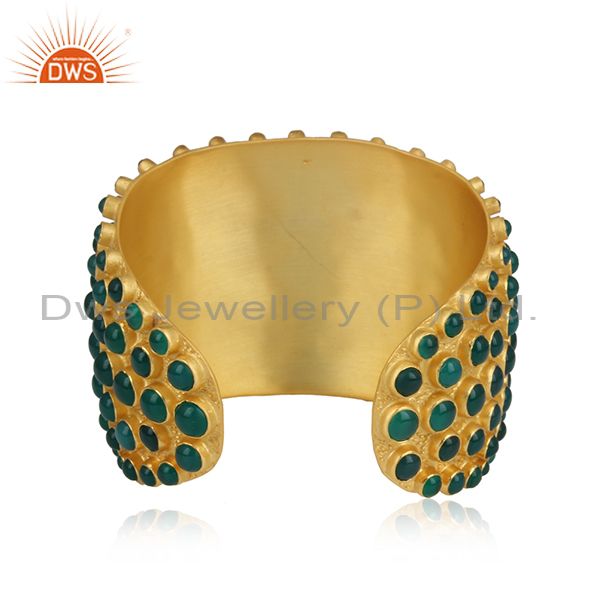 Handmade Green Onyx Set Gold On 925 Silver Cuff Bangle