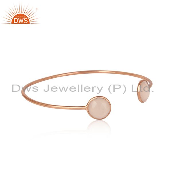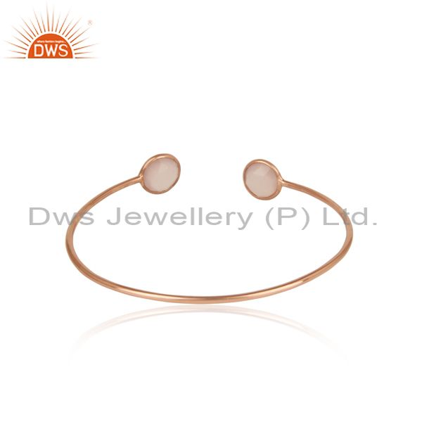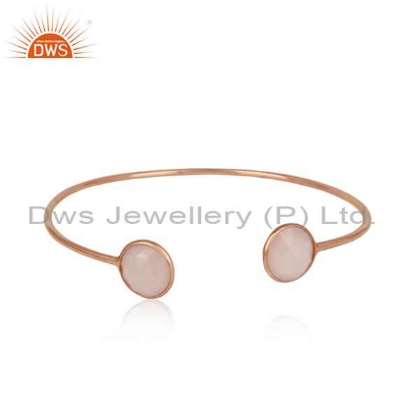 Handmade Rose Gold On Silver Rose Chalcedony Designer Cuff