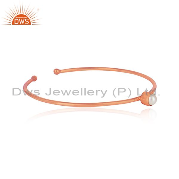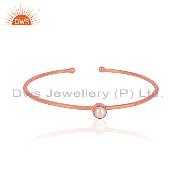 Handmade Silver 925 Rose Gold Plated Sleek Cuff With Pearl