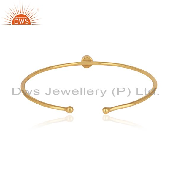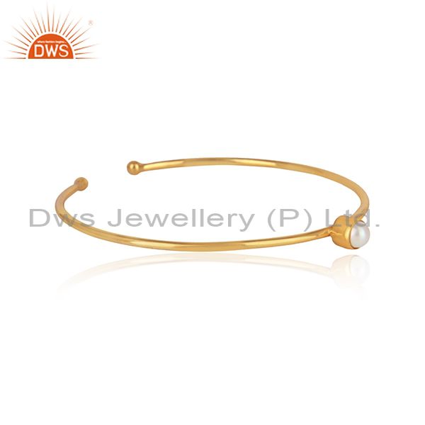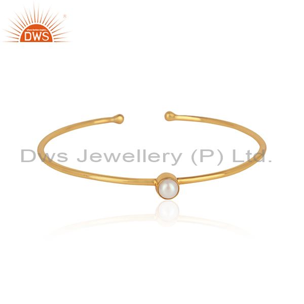Handmade Silver 925 Yellow Gold Plated Sleek Cuff With Pearl