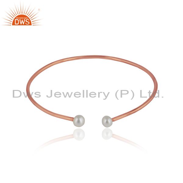 Handmade Sleek Cuff in Rose Gold On Silver 925 With Pearls