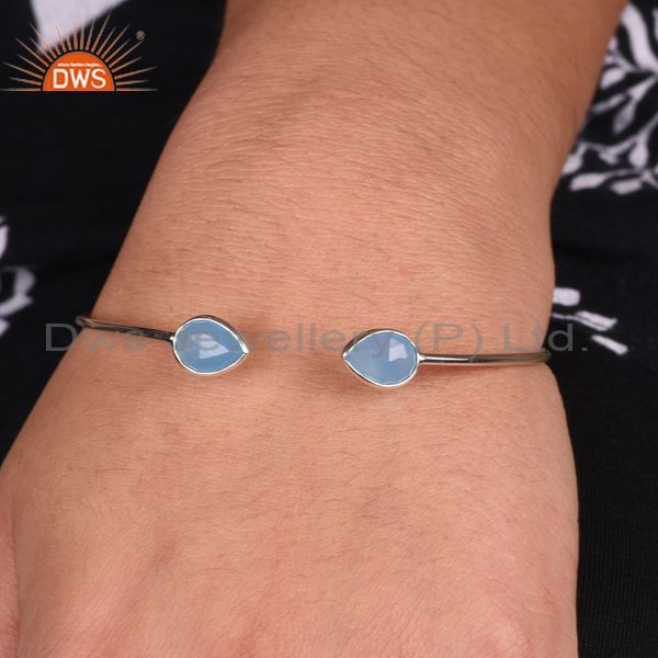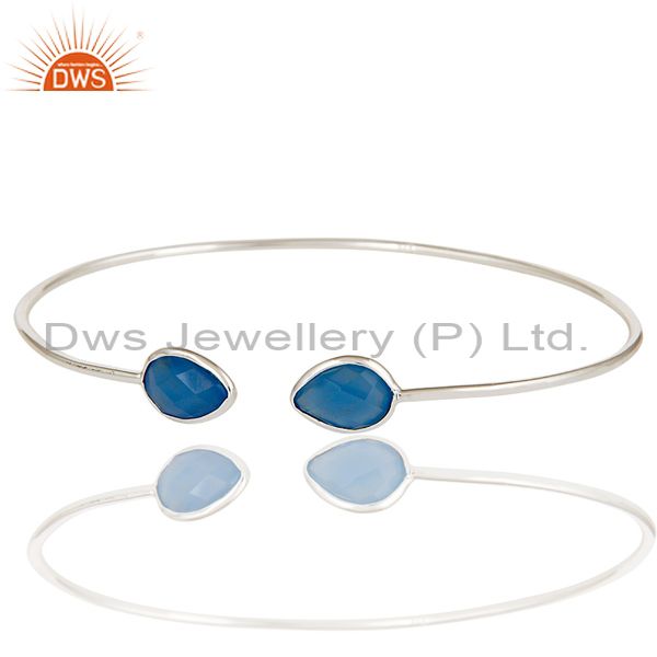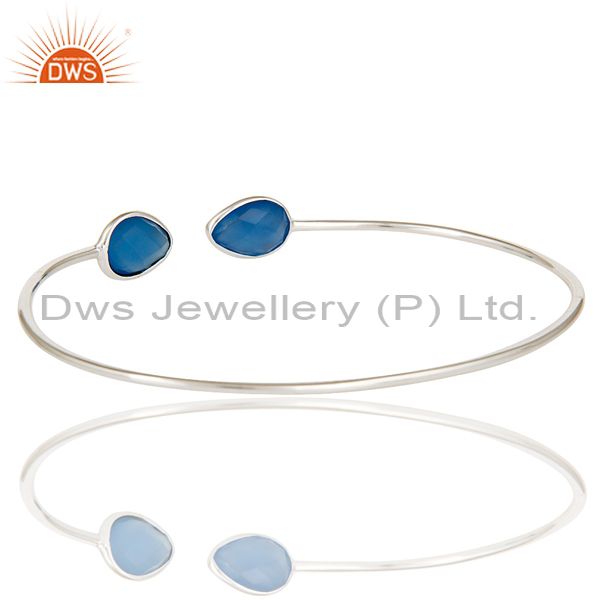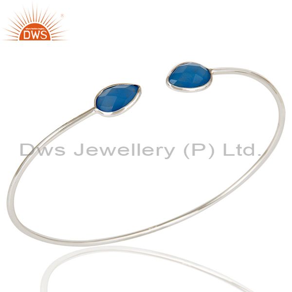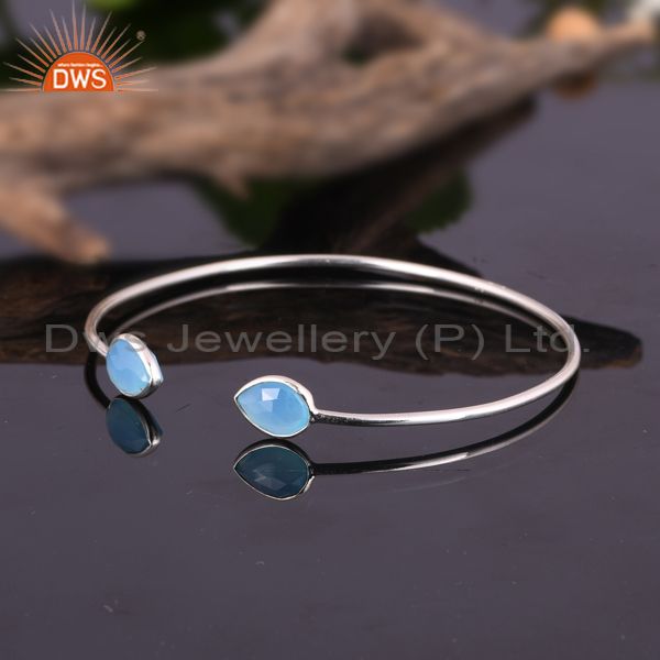 Handmade Solid 925 Sterling Silver Blue Chalcedony Open Stackable Bangle