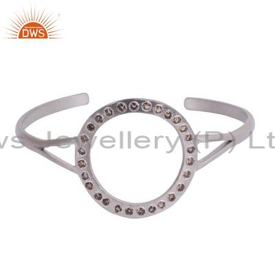 Handmade Sterling Silver Smoky Quartz Gemstone Fashion Cuff Bracelet Jewelry