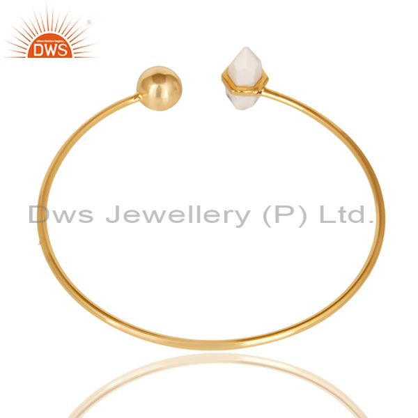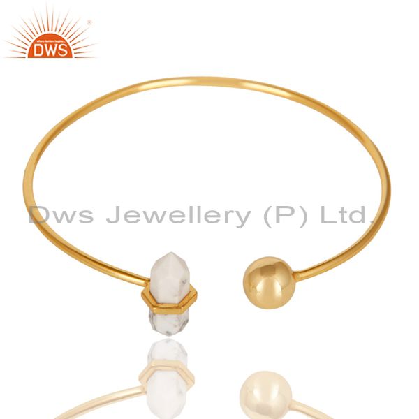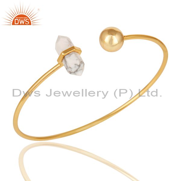 Howlite Double Terminated Pencil Point Openable Gold Plated Silver Bangle