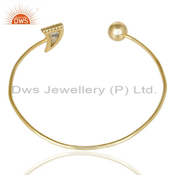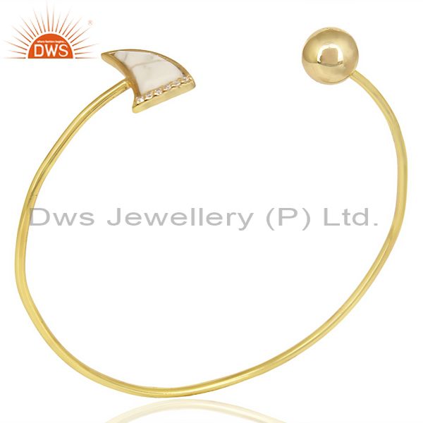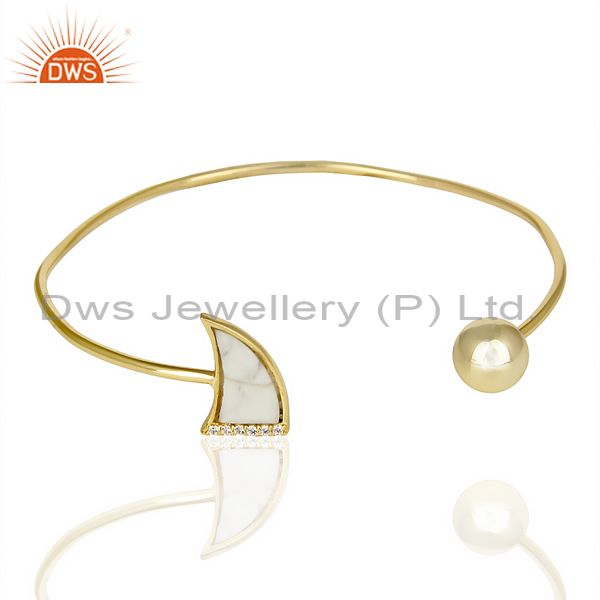 Howlite Horn Openable Gold Plated Bangle Studded With White Cz In Solid Silver