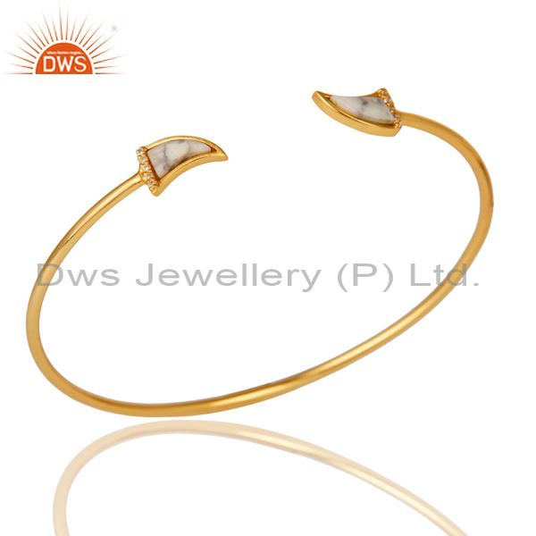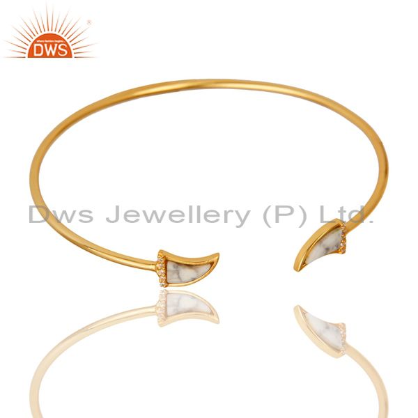Howlite Tooth Unisex Gold Plated Sterling Silver Openable Bangle