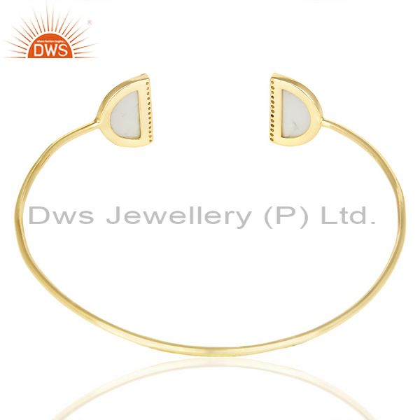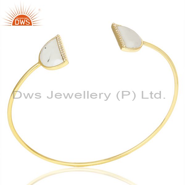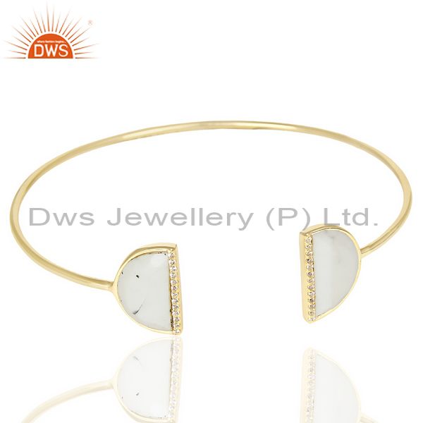 Howlite Two Half Moon 14 K Gold Plated Bangle Studded With Cz In Solid Silver