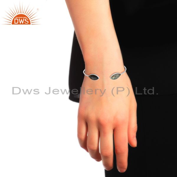 Labradorite Gemstone Designer Sterling Fine Silver Cuff Bangle