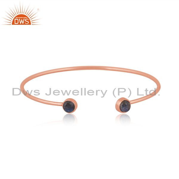 Labradorite Set Rose Gold On Sterling Silver Classic Cuff