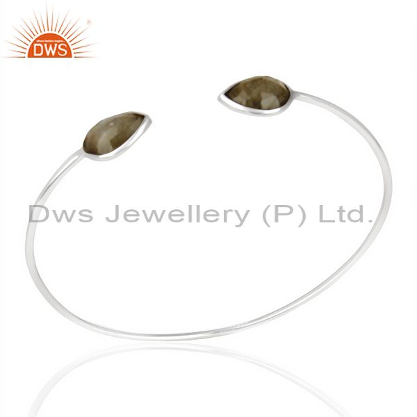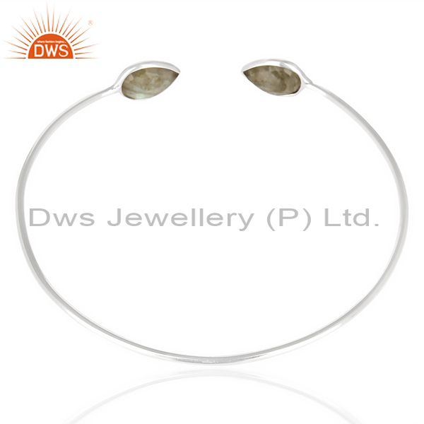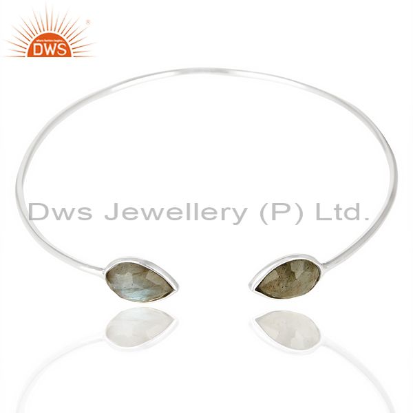 Labrodorite Adjustable Openable White Rhodium 92.5 Sterling Silver Bangle