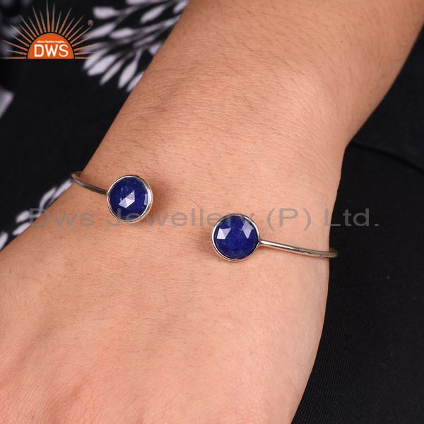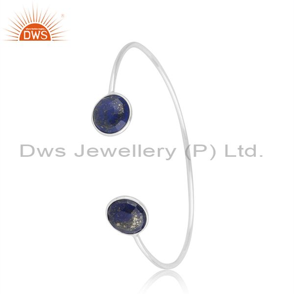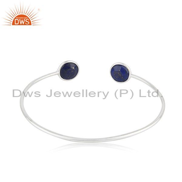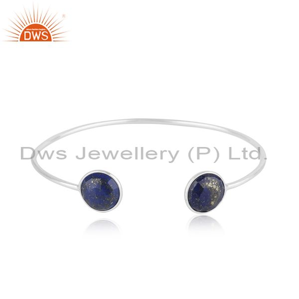 Lapia Lazuli Gemstone 92.5 Fine Silver Simple Cuff Bracelet Manufacturer India