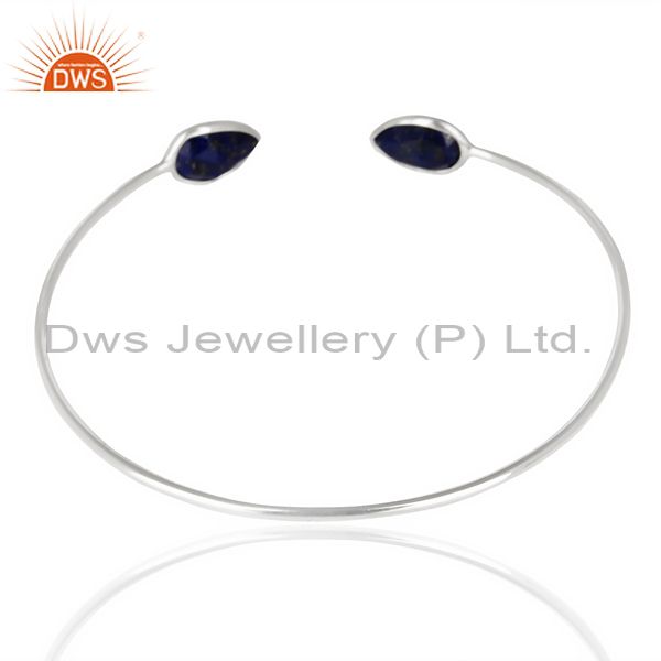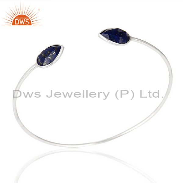 Lapis Adjustable Openable White Rhodium 92.5 Sterling Silver Bangle