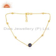 Lapis Lazuli Gemstone 925 Silver Gold Plated Cuff Bracelet Manufacturer Jaipur
