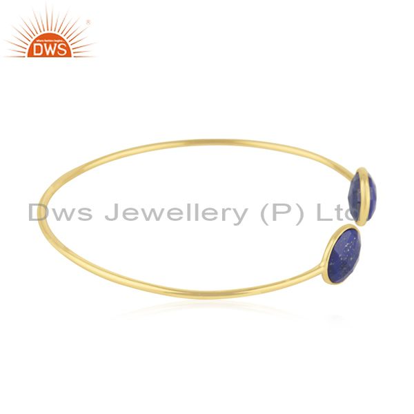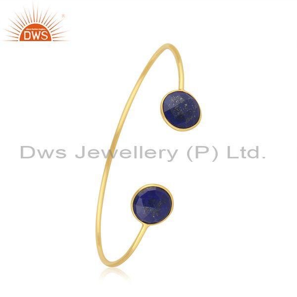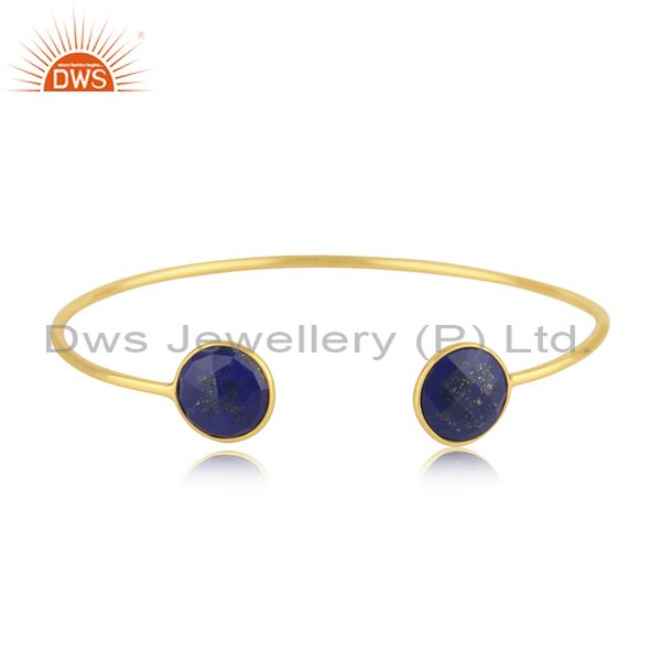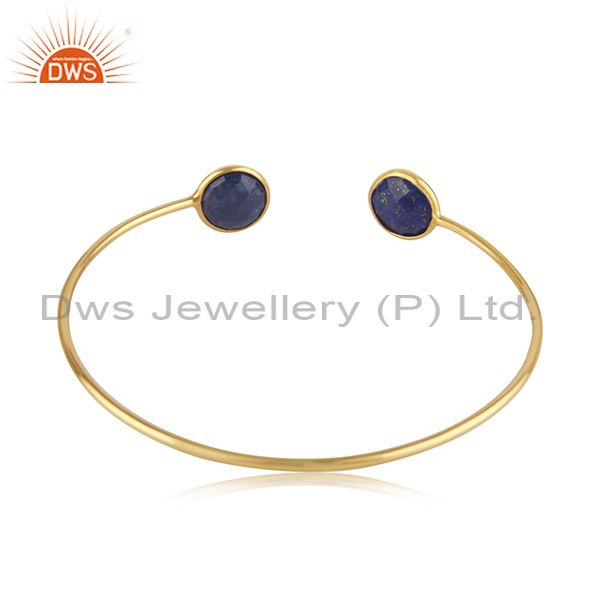 Lapis Lazuli Gemstone Gold Plated 925 Silver Simple Cuff Bracelet Manufacturer