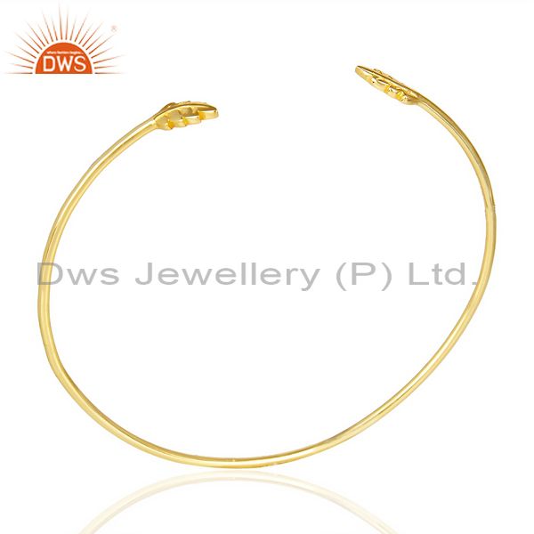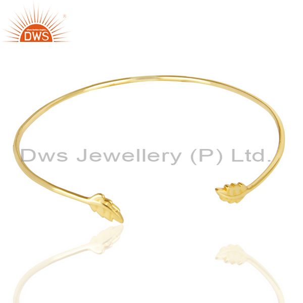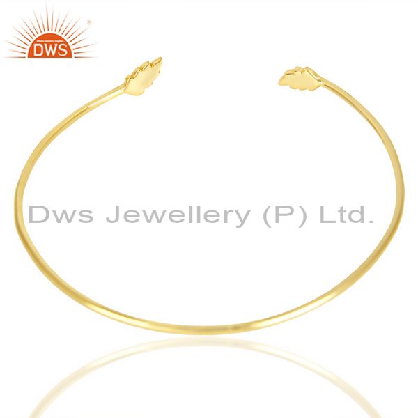 Leaf Adjustable Bangle 14 K Gold Plated In Solid 92.5 Sterling Silver